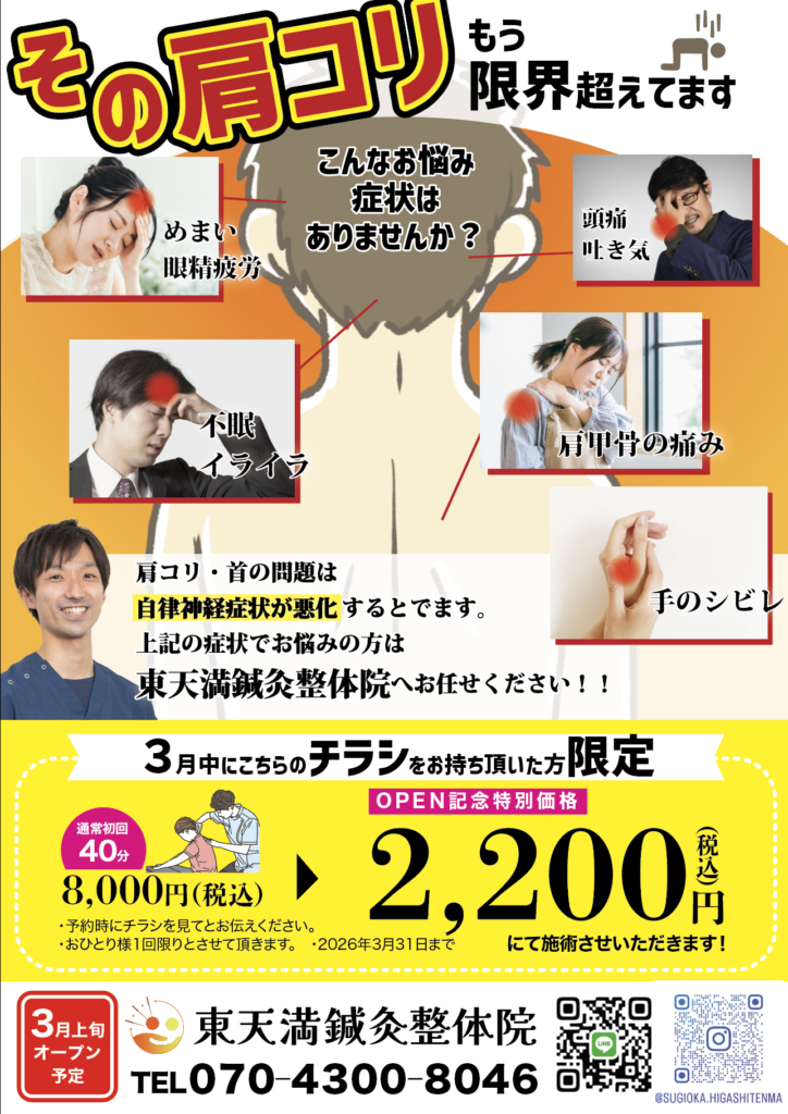 以下のような症状でお困りの方はぜひ当院の施術を体験してください。