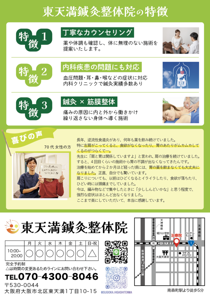 当院の院長は、修行時代に内科や整形外科など幅広い分野で学んだ知識を持っており、東洋医学と西洋医学を組み合わせた施術を提供しています。